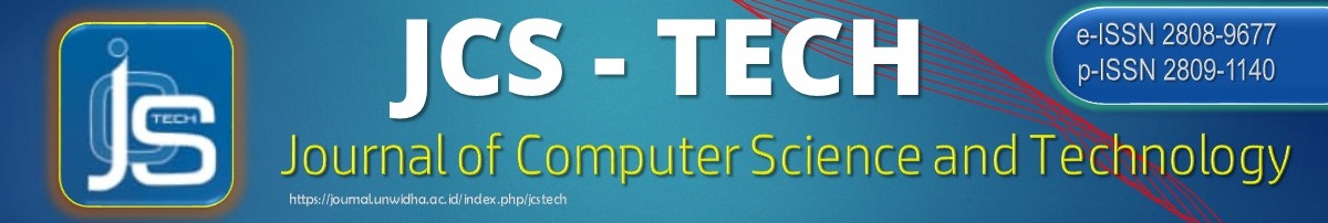 Journal of Computer Science and Technology (JCS-TECH) published by LPPM Universitas Widya Dharma is a scientific journal that presents original articles about knowledge and research information or applications of research and the latest developments in the field of technology and computer science with a SK issuance, P-ISSN: 2809-1140 and E-ISSN : 2808-9677. JCS-TECH publishes articles or scientific research papers twice a year. Journal of Computer Science and Technology (JCS-TECH) already indexing in SINTA with score S5 starting from Vol.2 No.1 of 2022 to Vol.6 No.2 of 2026 based on the Decree of the Director General of Higher Education, Research, and Technology Number 10/C/C3/DT.05.00/2025 dated March 21, 2025.